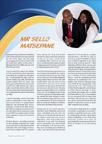 members to certain services at church. I During one of the church services I I continued to drink alcohol but would
