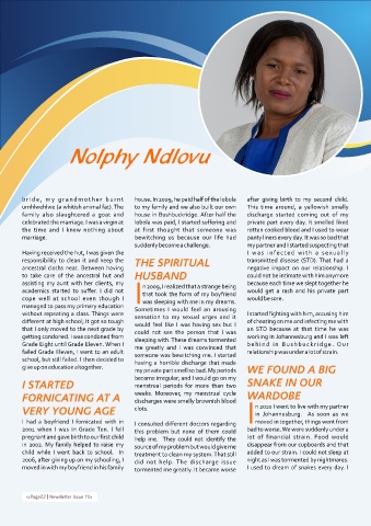 b r i d e , m y g r a n d m o t h e r b u r n t house. In 2009, he paid half of the lobola after giving birth to my second child.