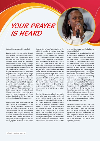 prayer is heard and that your John has to Receive this word and allow it to settle in your miracles wherever you are”. It can